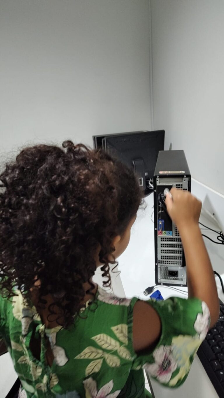 Os alunos aprenderam sobre os componentes de um computador, participaram da montagem e desmontagem das máquinas, criaram contas de e-mail para acessar o sistema da Google, exploraram a criatividade com desenhos relacionados à informática e finalizaram com um jogo da memória para reforçar os conteúdos de forma lúdica