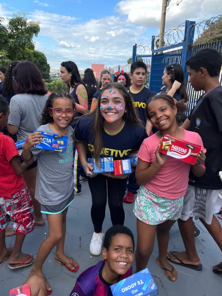 No dia 16/04/2025, no período da tarde, o Colégio Objetivo realizou uma ação de Páscoa na unidade com atividades recreativas e infláveis para nossos beneficiários. Ao final, todos receberam caixas de bombom, encerrando o dia com alegria e sabor! 🍫🎉🐰