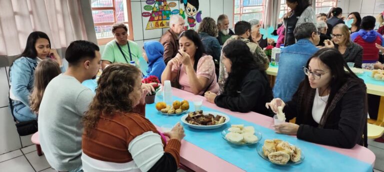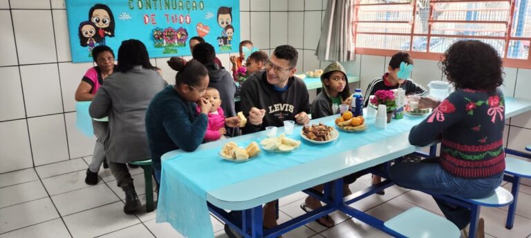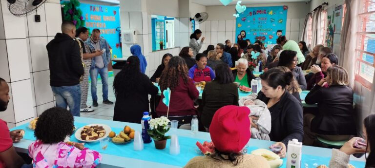 Foi oferecido um delicioso café da manhã com um momento de comunhão entre os profissionais e as famílias, e em seguida todos puderam apreciar um pouco do que é realizado nas oficinas de Artes e Música com a estreia do nosso Batuque do CCII.