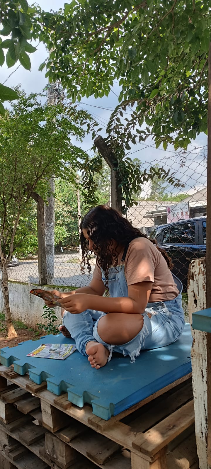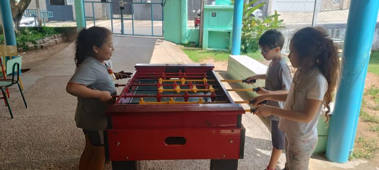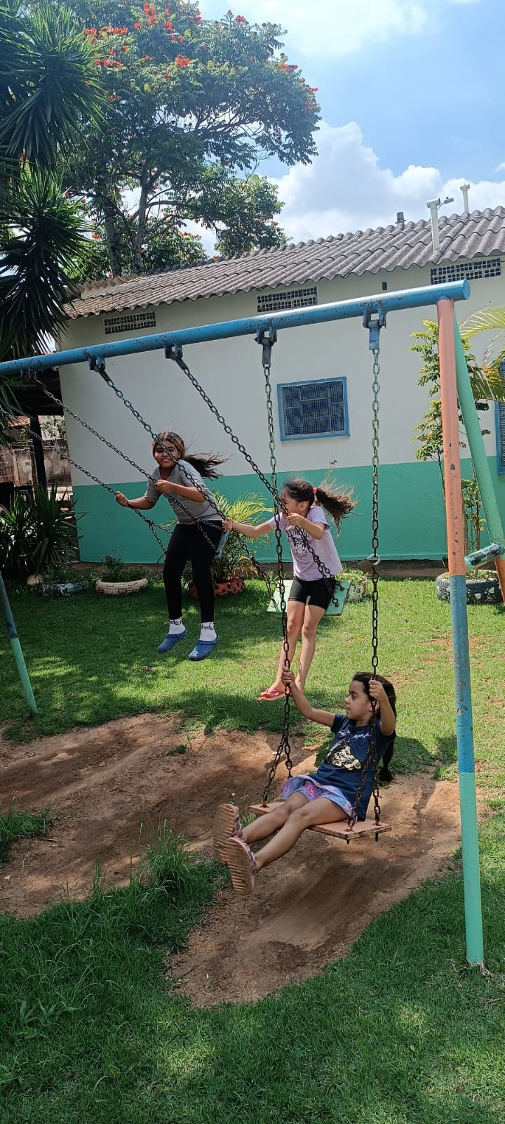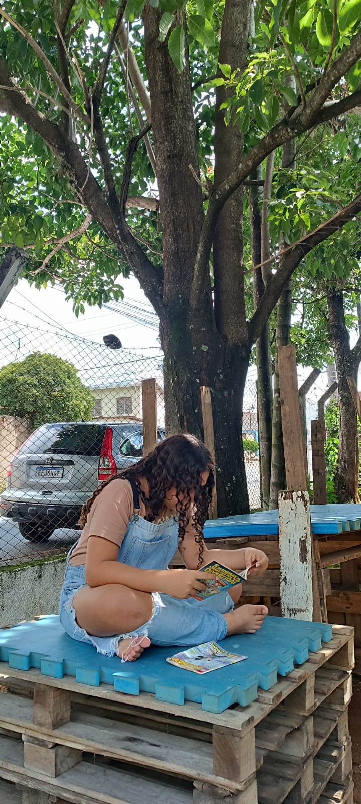 Hoje recebemos uma doação de gibis e nossas adolescentes já estão aproveitando momentos de leitura. Enquanto isso, as outras crianças se divertiram no parquinho e nos jogos, em um dia leve, educativo e cheio de alegria! 📚💛
