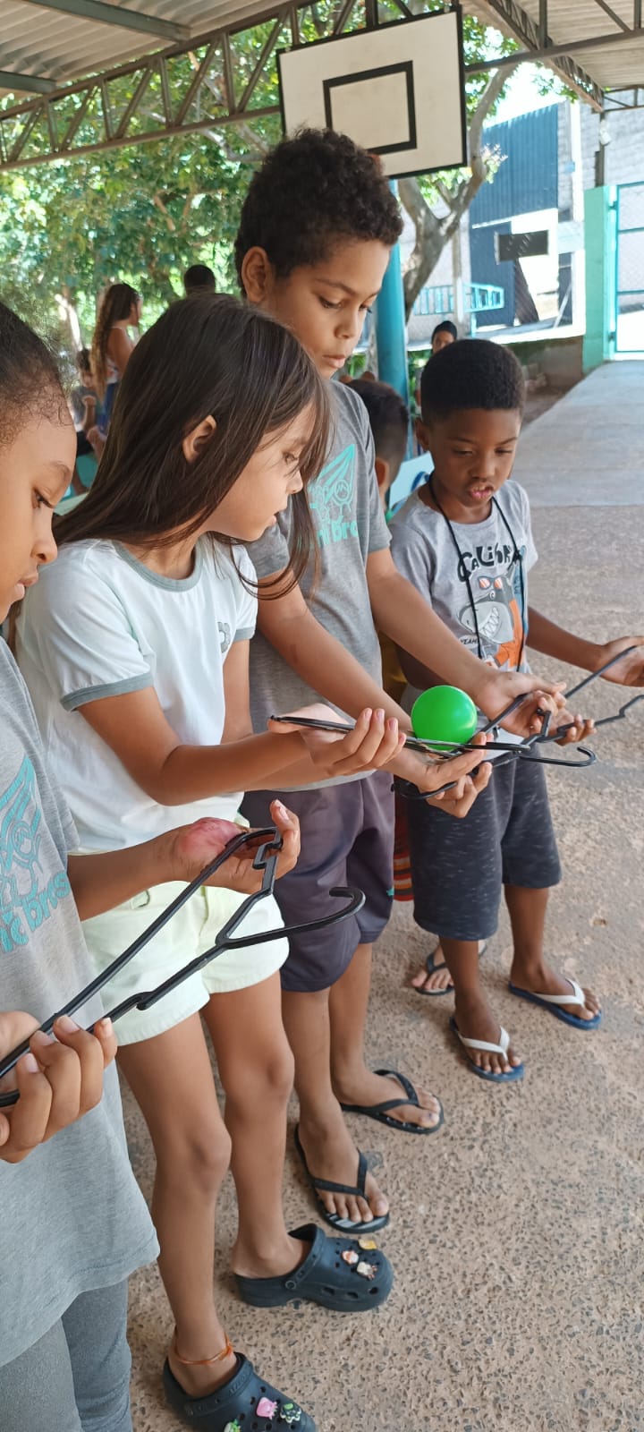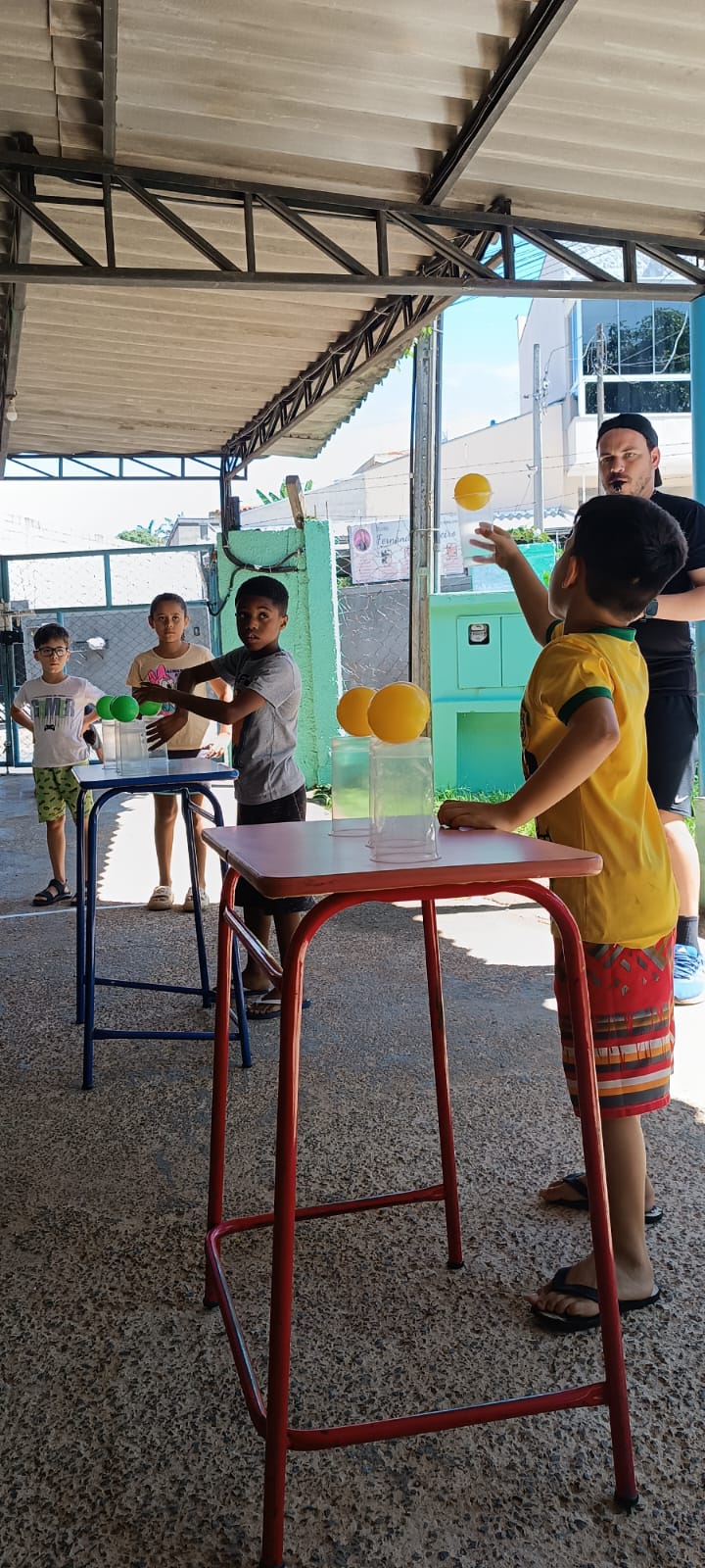 As gincanas do Projeto Férias estão a todo vapor! As atividades estimulam colaboração, respeito e paciência entre os participantes. Confira um pouco das brincadeiras como encaçapando as bolinhas e bolinha com cabide, que garantiram diversão e aprendizado em grupo! 🎯🤝💛