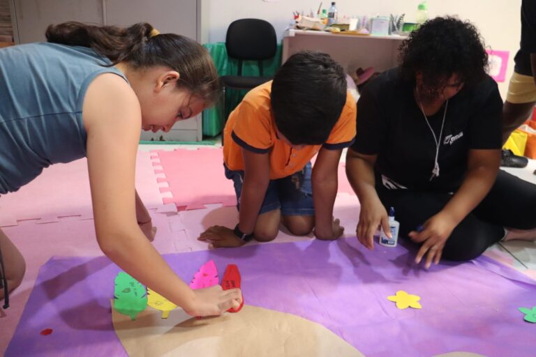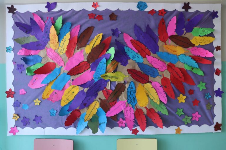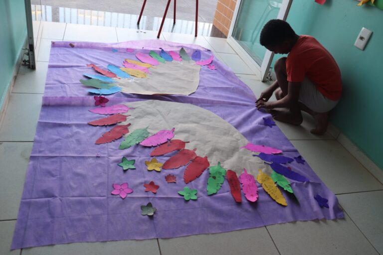 Na atividade Asas da Liberdade, cada participante escreveu palavras e sonhos em penas de papel, que unidas formaram um grande painel de asas. Uma obra coletiva e simbólica, lembrando que todas as mulheres merecem voar livres de qualquer forma de violência. 🪽✨