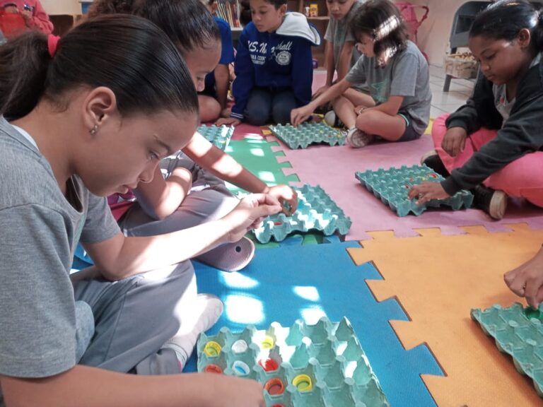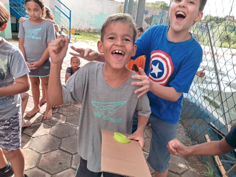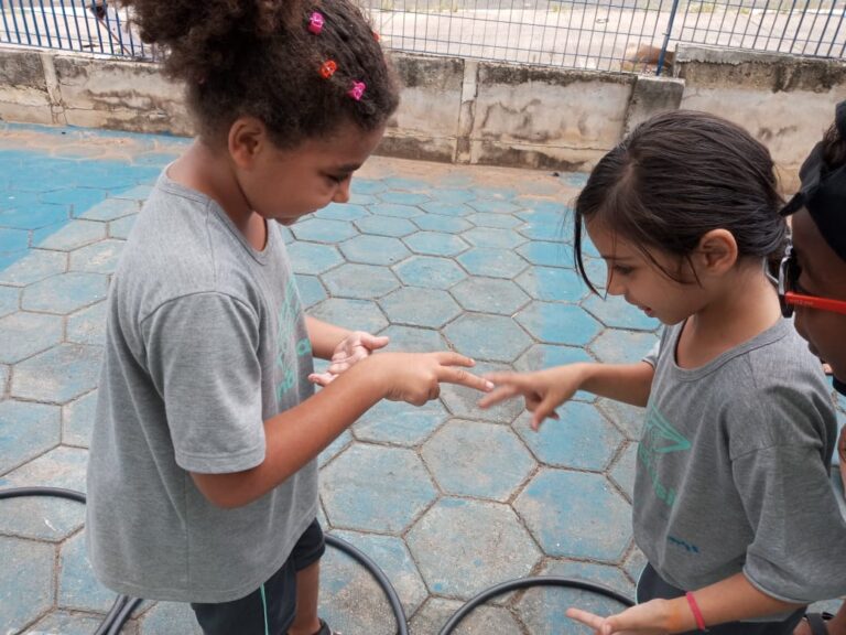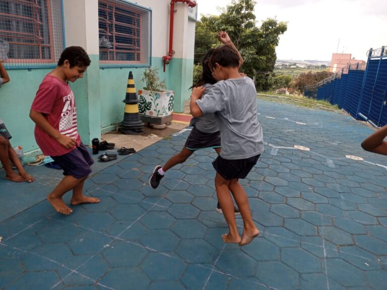 Nas oficinas de recreação do SCFV usamos jogos de encaixe com copos reaproveitados, cores em caixas de ovos, brincadeiras populares, amarelinha adaptada e Kung Fu. Mais que diversão, é ferramenta para o desenvolvimento social, emocional e cognitivo.